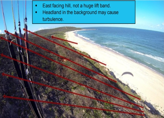- Once the winds venture past the northern headland, the site is in turbulence and unsafe to fly.