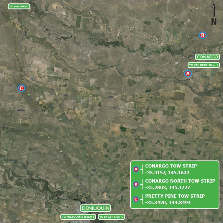 For insurance purposes this site is only open to financial members of the SAFA. The tow strips are not to be used on total fire ban days. Total fire ban days are declared at 6 pm the previous day on the RFS website. Petrol vehicles fitted with catalytic converters are responsible for starting many fires and are not suitable as tow vehicles and must not enter the tow paddock. All tow vehicles are to be equipped with a suitable fire extinguisher. All tow vehicles must be comprehensive insured, registered and roadworthy. Local SAFA representative Ron McKenzie must be contacted on 03 5884 6688 or 0427 799 253 before using tow strips.