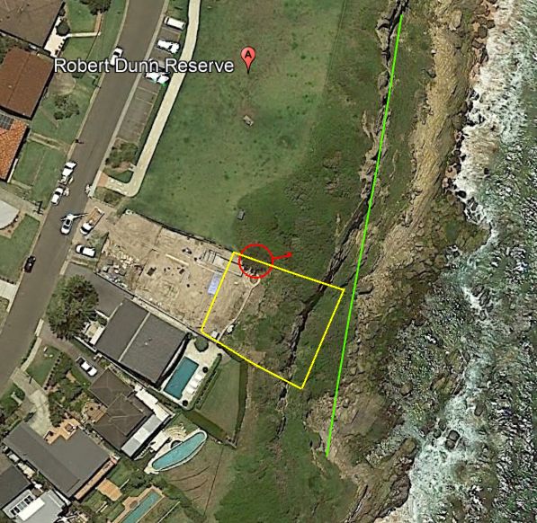 A.k.a. Robert Dunn Reserve. A large grassy park atop a sandstone cliff which faces almost due East but has a turn towards the North West at the northern end.